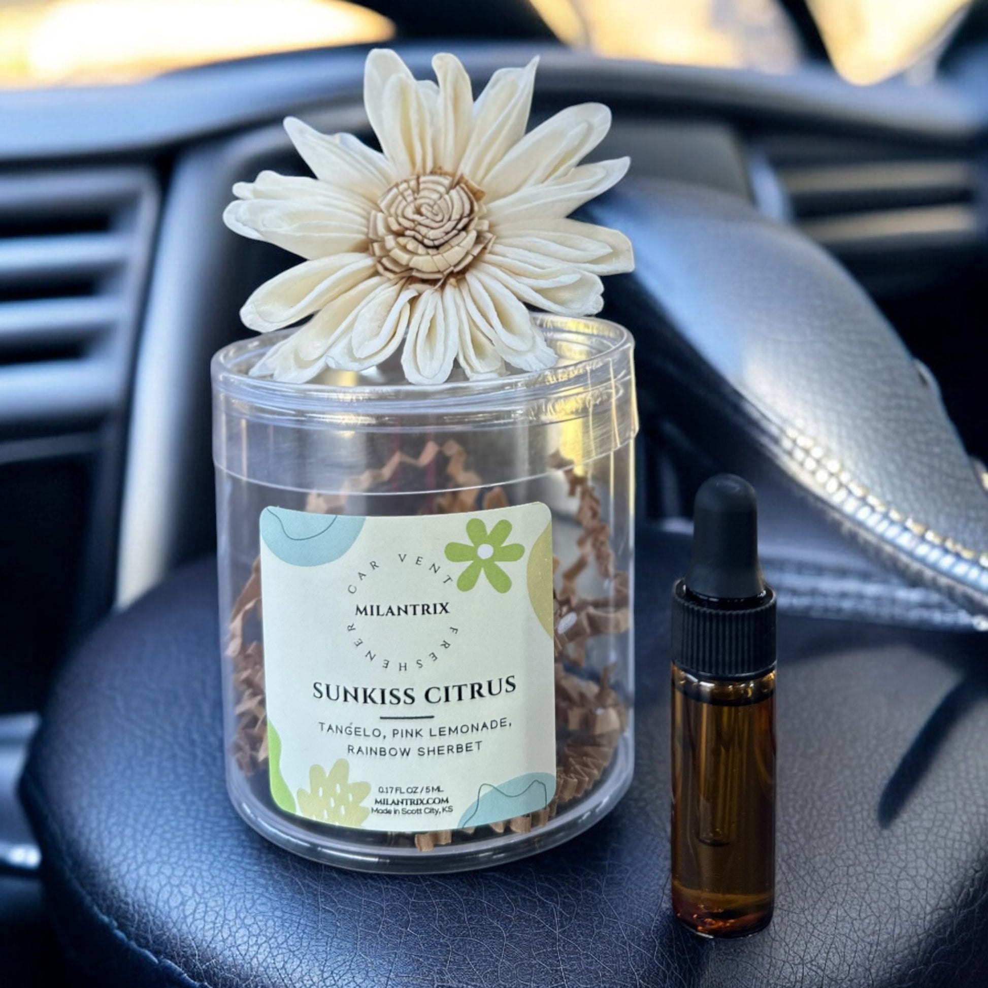 This car freshener is so cute! I love how it’s very secure on the vent. Each time I turn on my car I get a subtle scent of oranges. It is so nice that it’s not overwhelming since I have a sensitive nose. I also feel much better using it knowing the smell is organic and not chemicals.